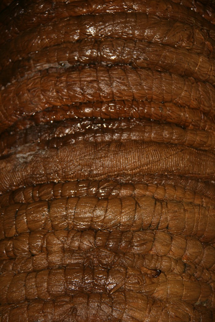 The humidity of the installation and the coloured drop of water accentuate the impression of an underground organic cavity.