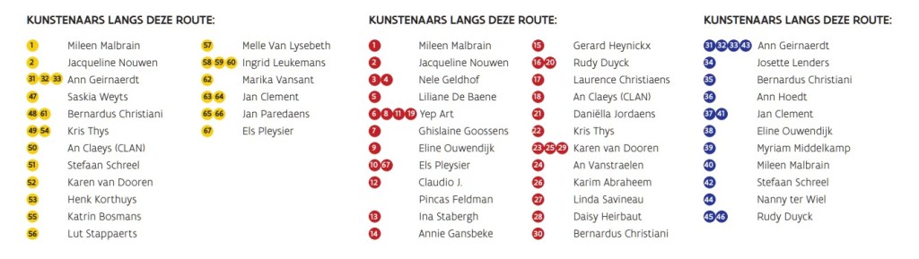 Hieronder vind u een lijst met de deelnemende kunstenaars. Per kunstenaar krijg je info over het werk of werken in de Plantentuin en wat er achter zit. Neem dus zeker een kijkje!