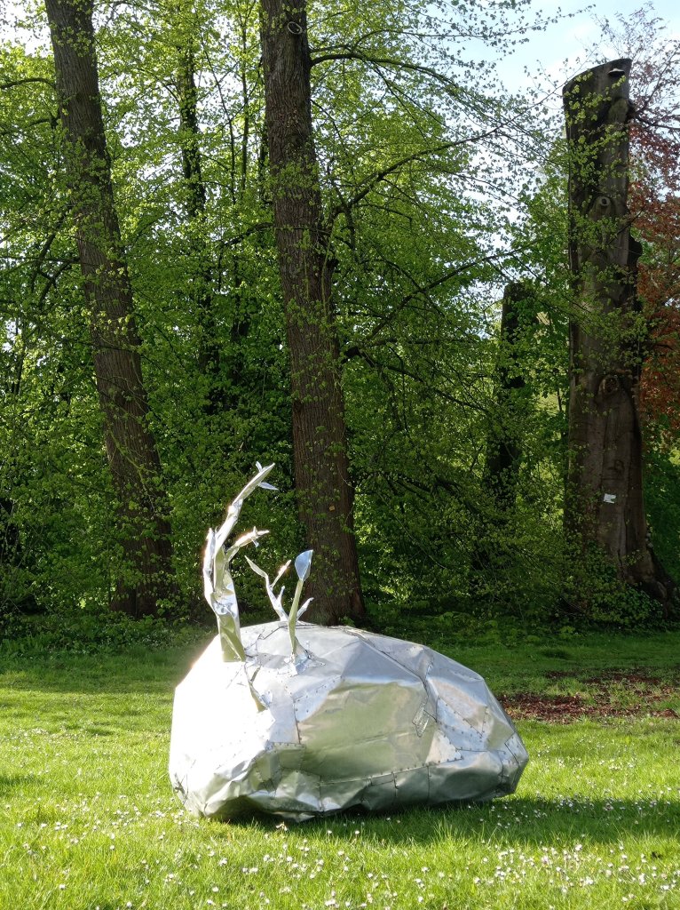 Les humains s’éloignent de plus en plus de la nature, de la base. L’aluminium réfléchit et reflète : vous posez en quelque sorte une question existentielle : Qu’est-ce que c’est ? Qu’est-ce que cela fait ici ? D’où cela vient-il ?