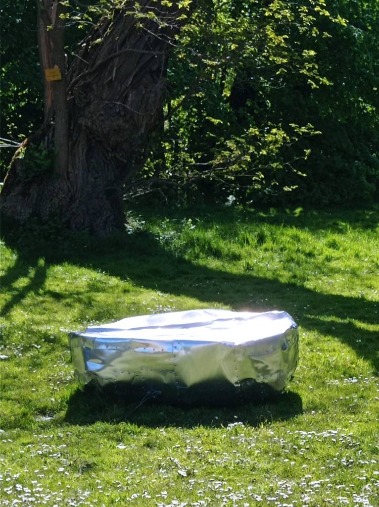 Man alienates more and more from himself and nature, the base. The aluminium reflects and mirrors: you are looking, as it were, at an existential question: What is that? What is that doing here? From where does that come?