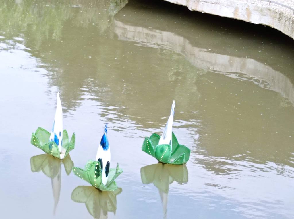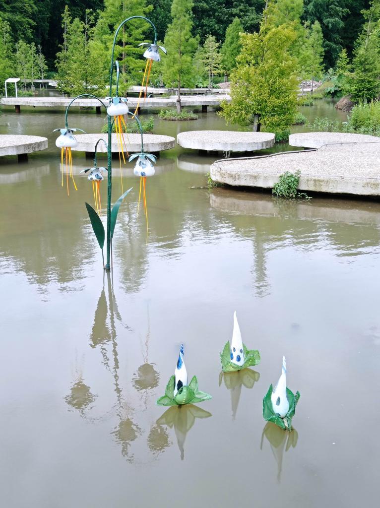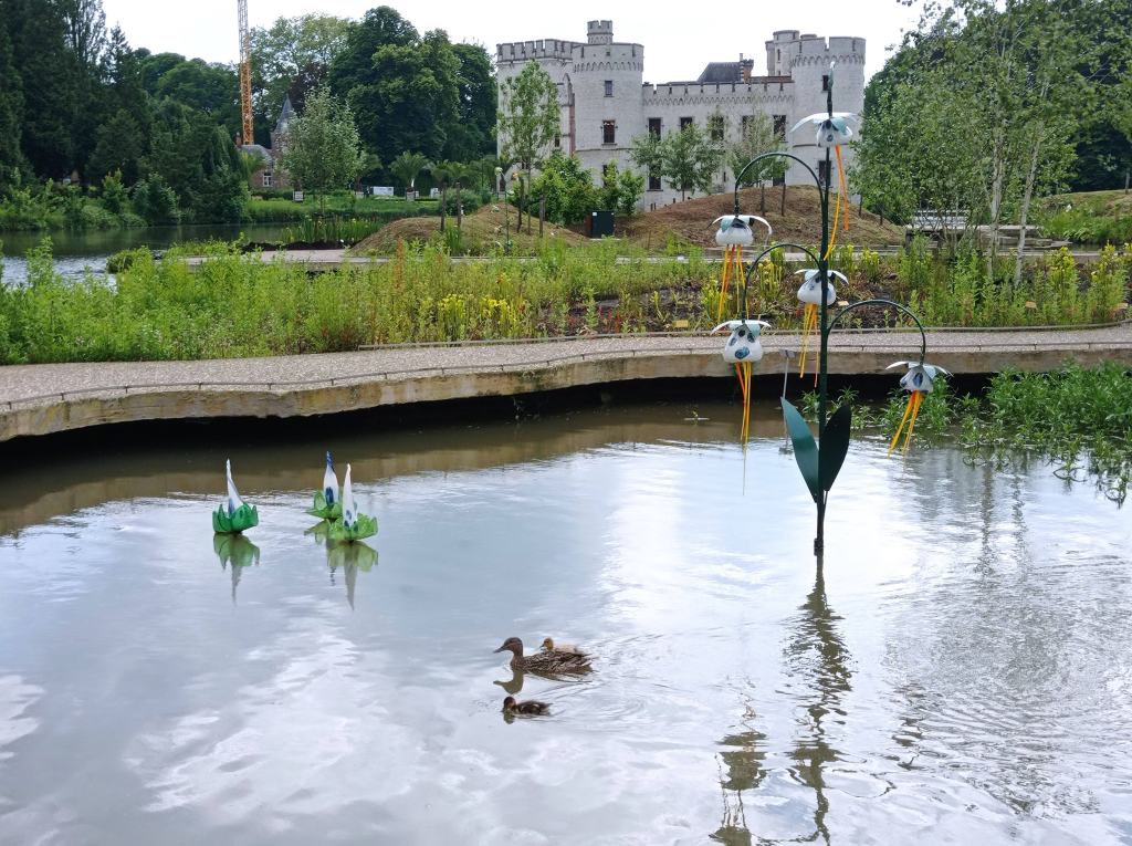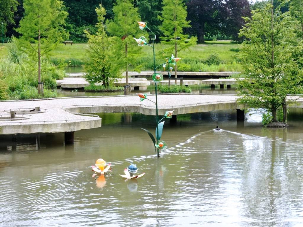 De sculpturen werden uit glas en ijzer gecreëerd.