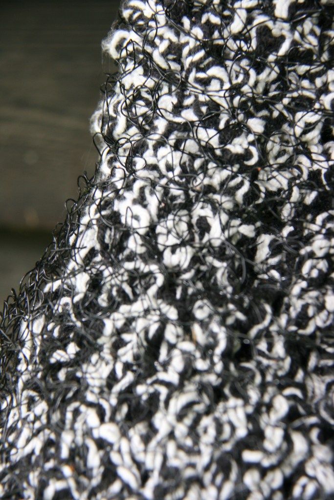 Comme la nature utilise tout, je préfère travailler avec des matériaux récupérés. Pour cet endroit, j’ai transformé d’anciens tricots, crochets, dentelles et textiles réformés en une sorte de cocon.