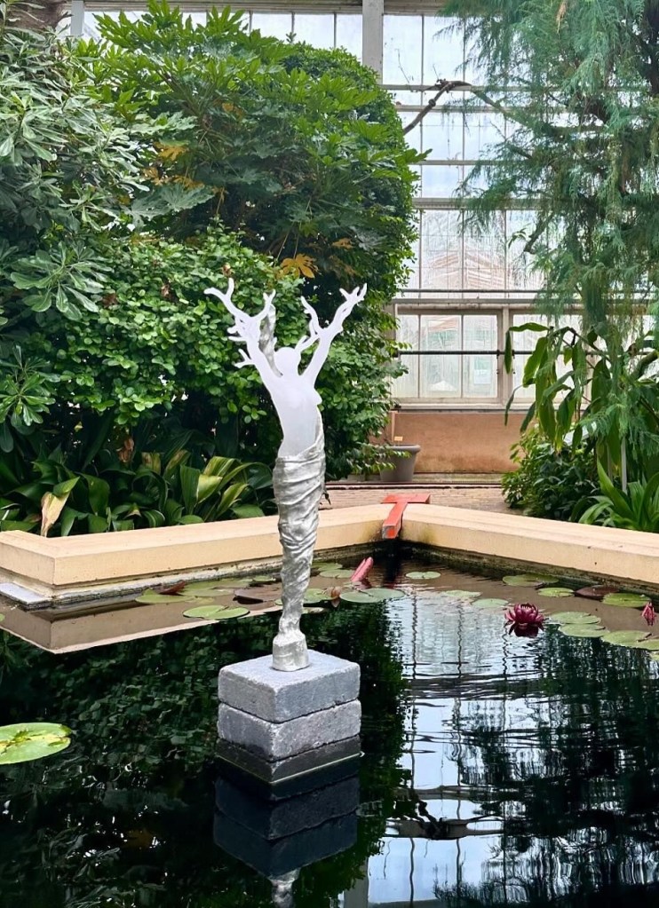 De golf stuwt de vrouw omhoog. Een vrouw die overgaat in een levensboom. Ze lijkt fragiel en licht, maar is sterk en krachtig.