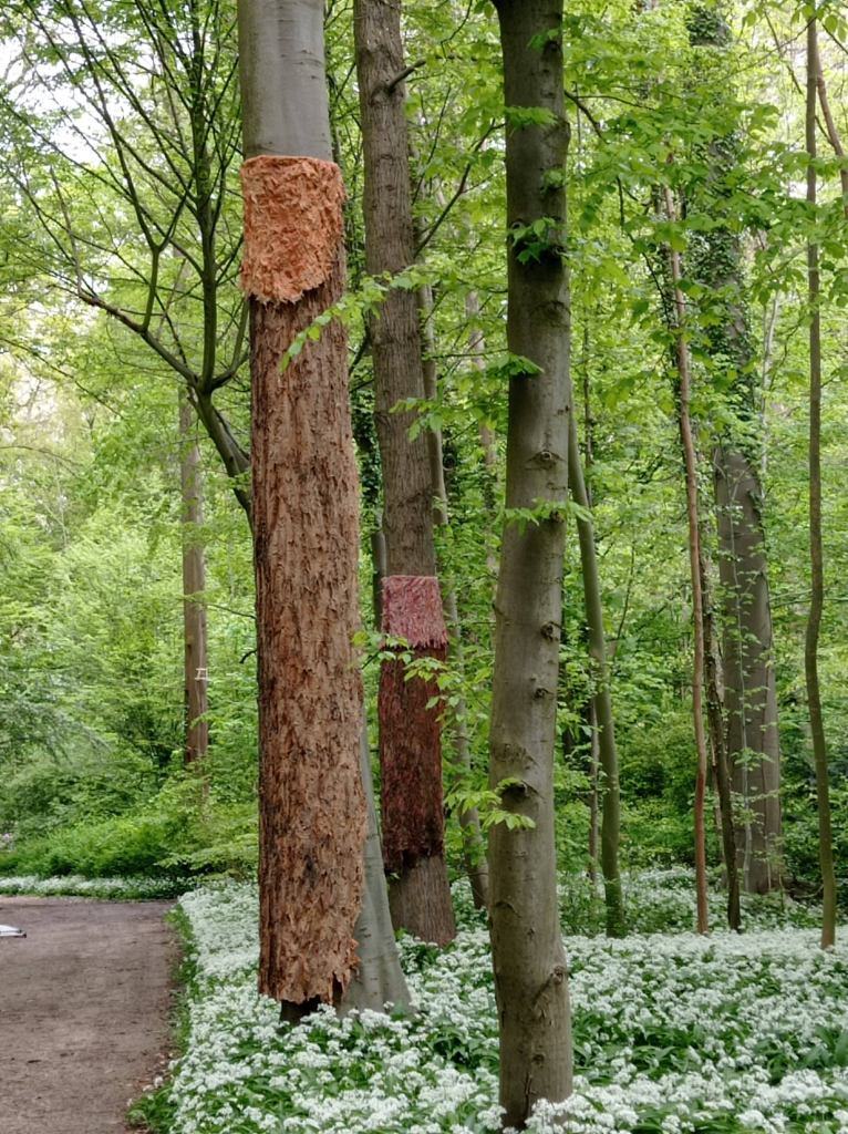 The installation ‘More Trees, Less Assholes’ that I am showing in the Botanic Garden are prints of tree trunks. These replicas will be hung, around or between trees. These replicas are latex-based, prints of tree trunks.