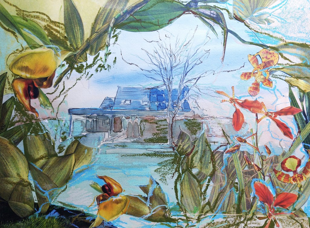 In Waar leegte een beeld krijgt is bewust gekozen voor open kaders. Zonder glas ontstaat een zachtere grens tussen werk en toeschouwer. Je kijkt niet naar, maar in het beeld. Schaduwen vallen anders, texturen spreken luider, kleine details – een vezel, een penseeltoets, een randje worden tastbaar. Wat hier getoond wordt, is kwetsbaar, net als de herinneringen waaruit het is opgebouwd. Uit onze ontmoetingen groeiden stille beelden, tastbare resten van nabijheid en verlies. Pas nadien voegden de orchideeën zich bij het beeld als fluisterende lagen uit een Artis Historia-boek. De orchidee, botanisch symbool van overleven en verfijning, brengt een tweede huid aan op het verhaal van verlies. Haar wortels hechten zich aan het beeld zoals herinneringen zich vastzetten in ons lichaam. Tussen kleur en ritme, figuratieve en abstracte vormen ontvouwen zich in stilte drie ensembles. Een visuele rouwcollage waarin de natuur niet slechts decor is, maar getuige en drager van gekoesterde momenten.
