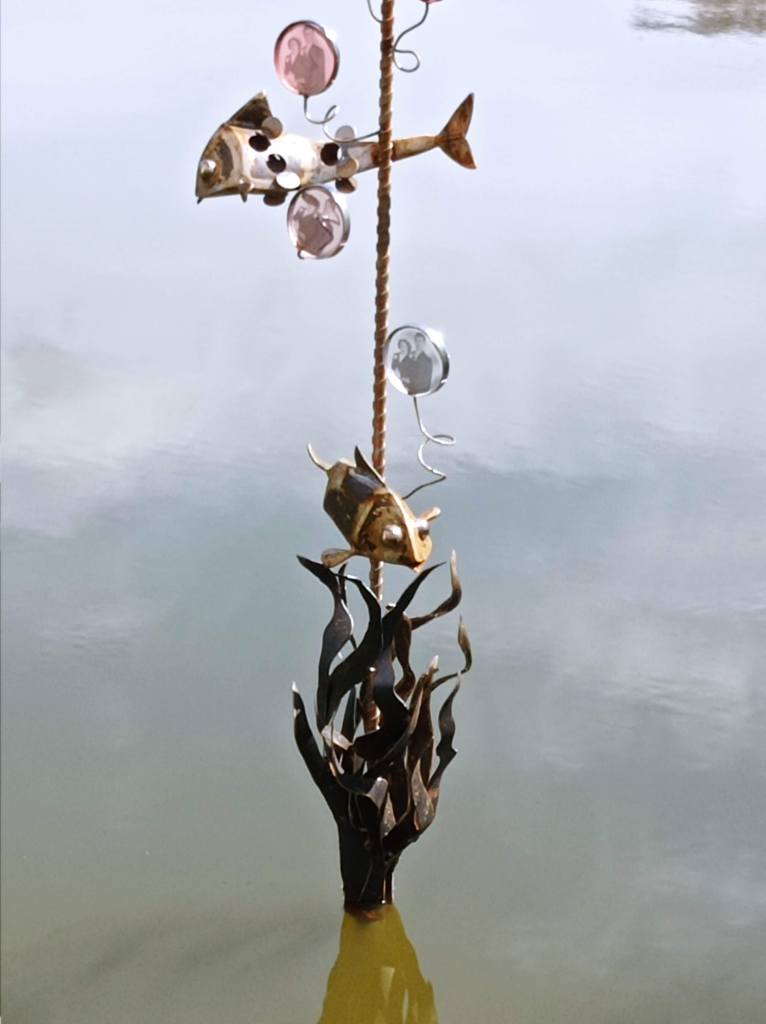 L’œuvre commence par un poisson entier qui émerge de la surface de l’eau. Au fur et à mesure qu’il s’élève, il se désintègre en plusieurs parties. Au final, il ne reste que son âme et les arêtes.