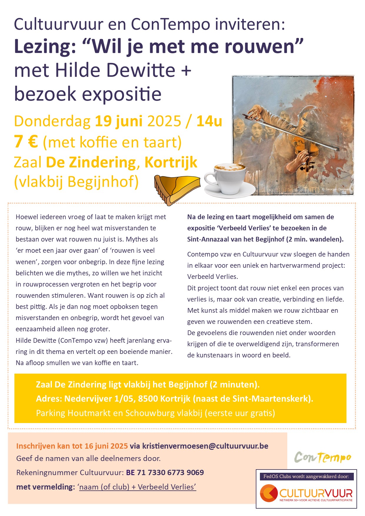 Inschrijven voor 16 juni: kristienvermoesen@cultuurvuur.be