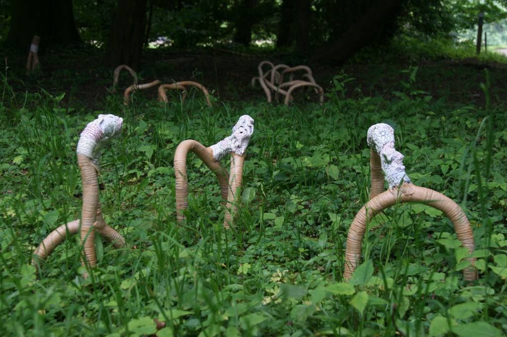 Trees are very ancient creatures. They are amazing communicators. Scientists are discovering fascinating aspects. They talk about plant intelligence, about communication between trees, about symbiosis. Trees are central to me, they provide our oxygen. Under our feet is a network: “Wood Wide Web“. My works tell about it.